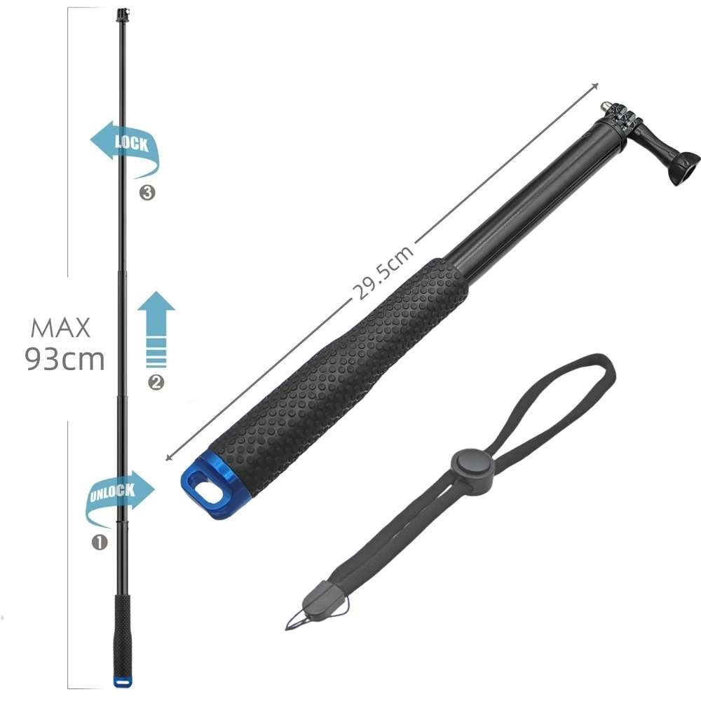 Aluminum Alloy Extention Pole Selfie Stick Long Rod Length Up To 93 cm For GoPro Hero 13 12 11 10 9 Insta360 ONE X4 X3