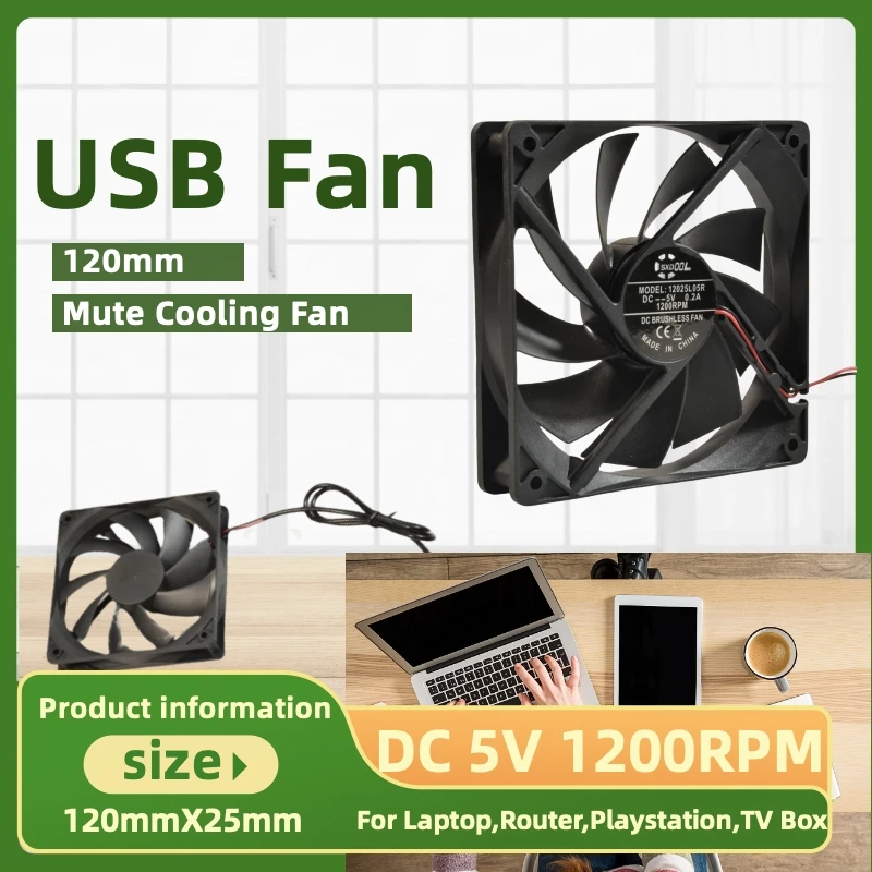 120mm 5V USB Power Cooling Case Fan for Receiver DVR Xbox TV Box Router