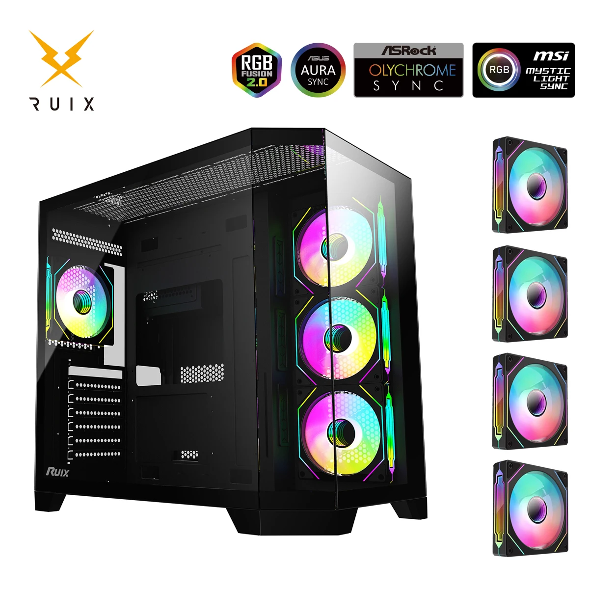 Ruix OV303 Black Color ATX Mid Tower Computer Case, With 4 ARGB PWM Fans Pre-Installed, Type-C USB 3.0, Tempered Glass Side Panel