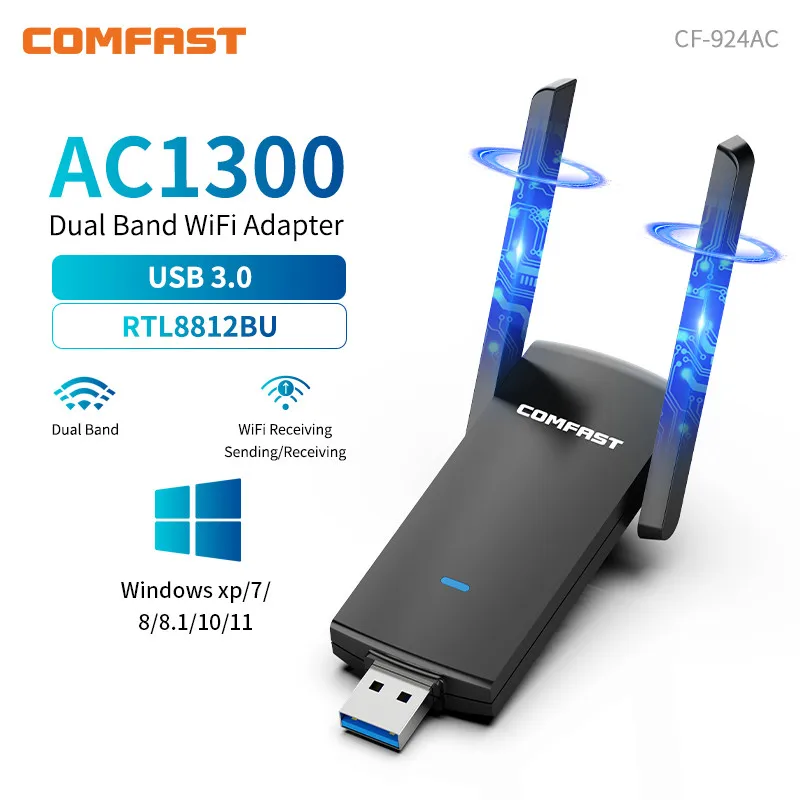 1300Mbps Adaptador Wifi Adapter RTL8812BU Cle USB3.0 Antena Para PC 2.4G/5ghz Wi-fi Network Card 2dBi Ethernet Dongle Win 11 10  Read more