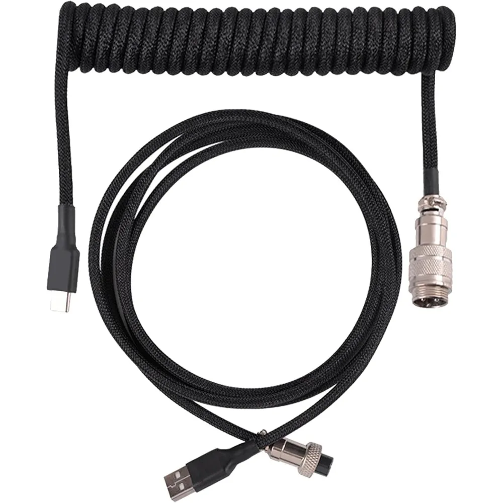 Gaming Mechanical Keyboard Cable Coiled Double-Sleeved with Detachable Aviator, USB-C to USB-A 1.5M