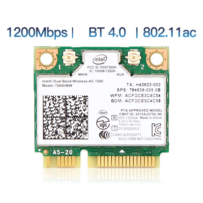 1200Mbps Dual Band 802.11AC for Intel7260 7260AC 7260HMW 2.4/5GHZ 867M Wifi Bluetooth 4.0 Mini PCIe Wireless Network Wlan Card