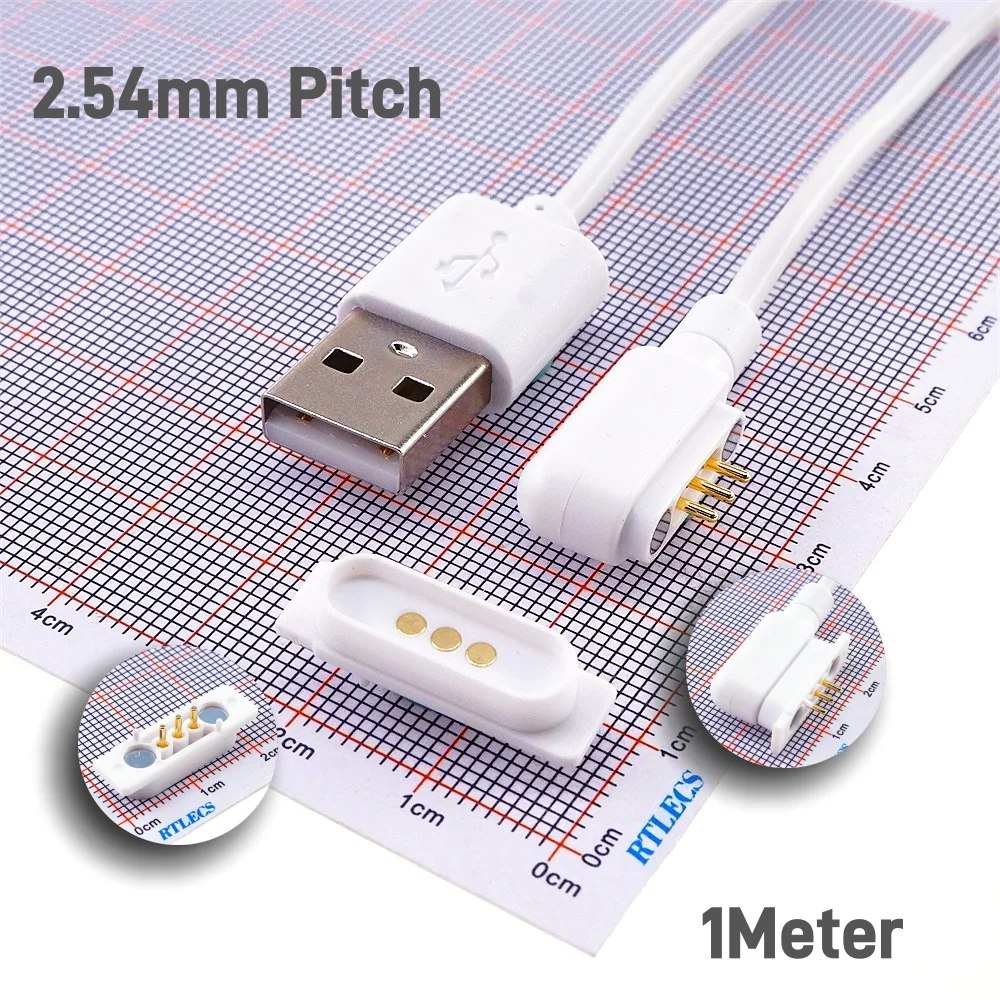 1 Set Magnetic PogoPin Connector 2.54mm Spacing USB Charging Cable 3 Pin Pogo Male Female 1 Meter Length Power