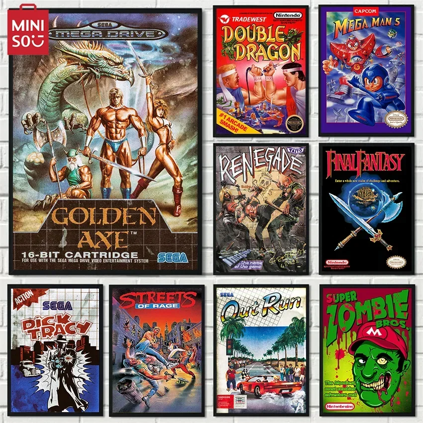 MINISO Retro Classic Arcade Fight Video Game Golden Axe/Streets of Rage Poster Canvas Painting Wall Art Pictures Home Room De
