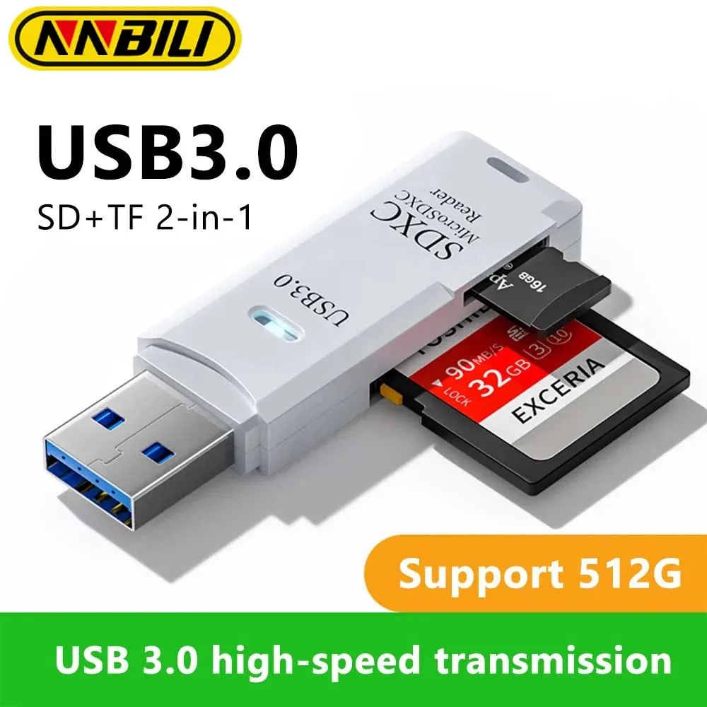 NNBILI 2 in 1 USB3.0 Card Reader Micro sd card Reader usb adapter High Speed Cardreader TF Memory card For PC Laptop Accessories