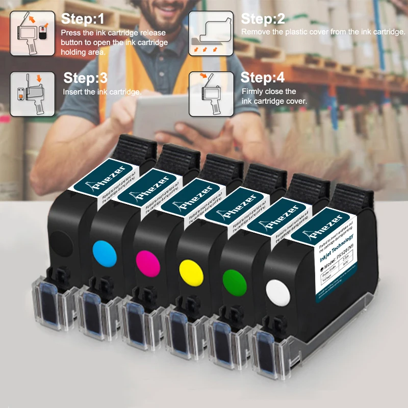 Phezer 25.4mm Color Ink Cartridge Handheld Online Inkjet Printer Original Ink Cartridge High Adhesion Quick Fast Dry