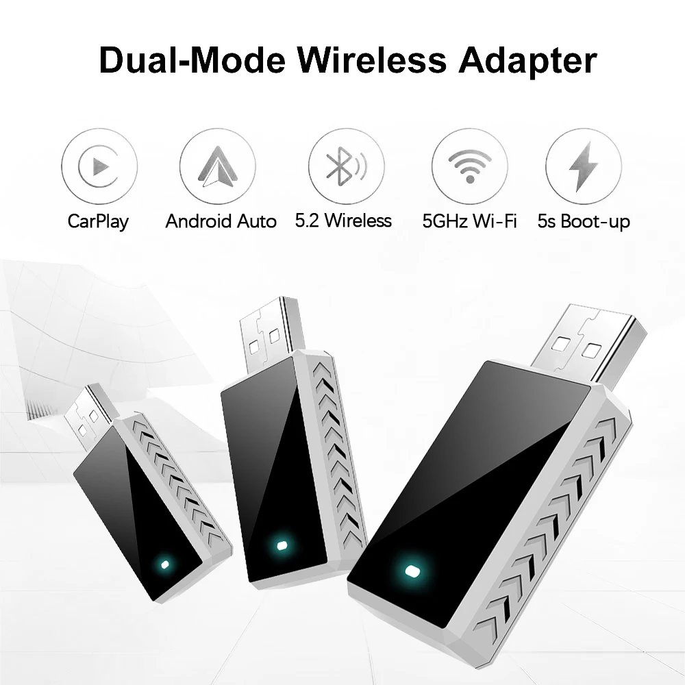 2 in 1 Wireless CarPlay Android Auto Adapter Smart USB Dongle Auto Connect Plug & Play for iPhone and Android Factory Wired Cars