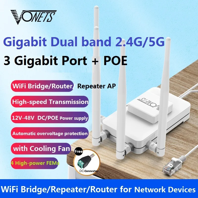 VONETS Gigabit POE Dual Band 2.4G/5G Wireless Bridge WiFi Router Repeater WiFi Ethernet Adapter for DVR Monitoring 1000M VAR1200