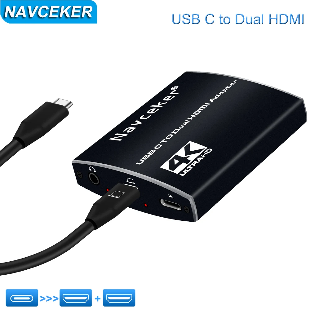 USB C to 2 HDMI-compatible Dual 4K Displays Digital AV Adapter for MacBook Pro Mac Air/iPad Pro, Dell XPS 13/15, Surface Pro 7/Go