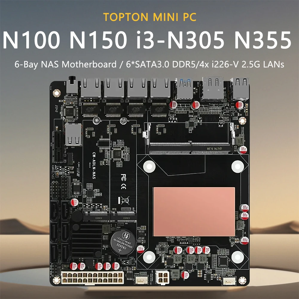 12th Gen Intel i3-N305 N355 N100 N150 NAS Motherboard 6-Bay 4xi226-V 2.5G 2*NVMe 6*SATA3.0 DDR5 PCIex1 Type-C Firewall Mainboard