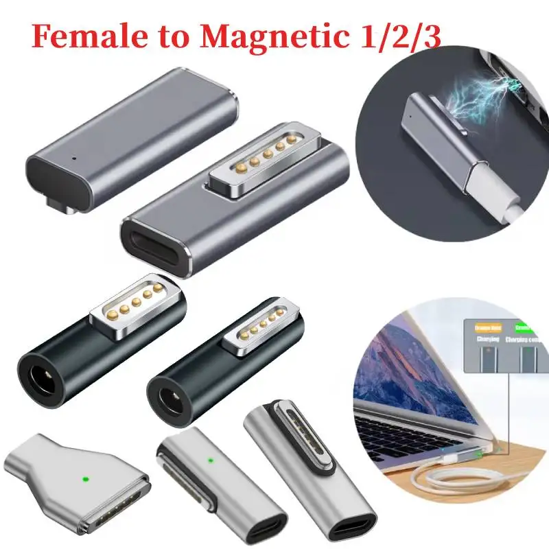 USB Type C Magnetic PD Adapter for Magsafe 1 2 3 MacBook Air Pro Led Indicator Fast Charging Magnet Plug Converter