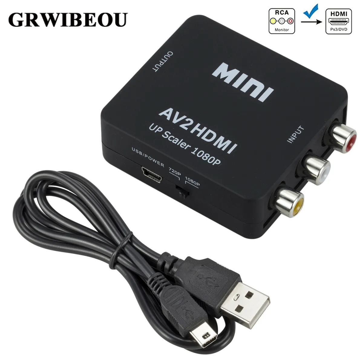 Grwibeou RCA AV to HDMI Converter High Quality HD 1080P AV 2 HDMI Adapter For TV X box PS4 PC DVD Projector AV To HDMI Converter