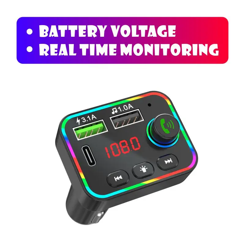 Bluetooth 5.0 Car FM Transmitter PD Type-C Dual USB Atmosphere MP3 Player Type-C Fast Charger Accessories Hands-free PD QC3.0