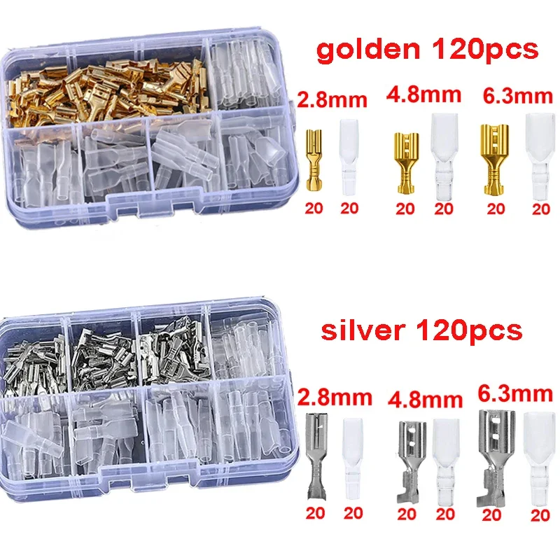 120 PCS Gold Silver Docking Terminal Cable Bare Terminal Spring Insert Sheath Terminal Set Male And Female Pair Terminal Box