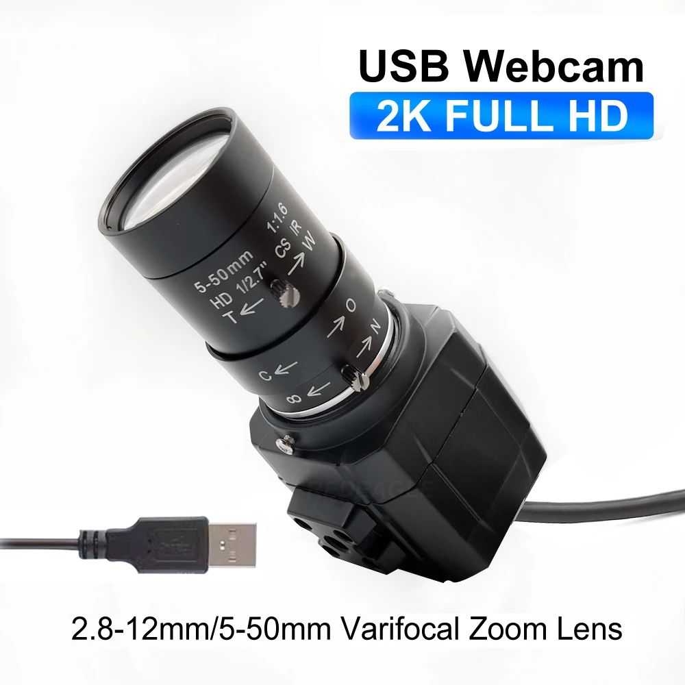 2K 4MP USB Webcam PC Camera 30fps 2560x1440 MJPG High Speed UVC BOX Camera Varifocal Zoom 2.8-12mm/5-50mm or fix 4mm 6mm Lens