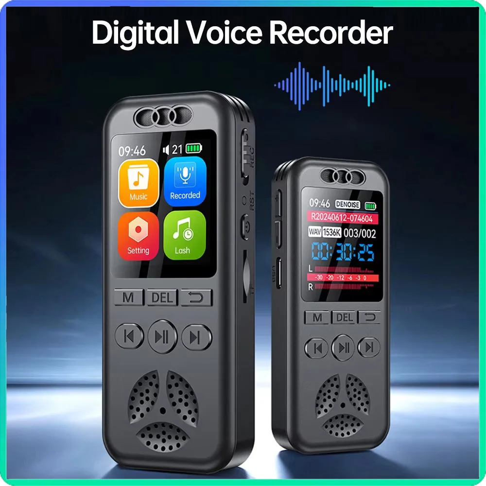 128GB Digital Voice Recorder Voice Activated Audio Recording Noise Reduction Playback MP3 Player Voice Recorder For Meeting