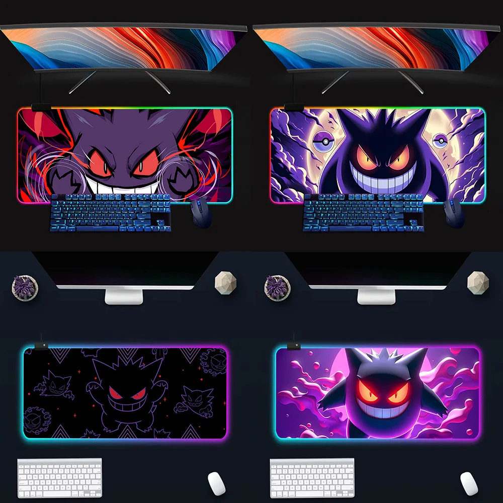 Classic Anime P-Pokemon-Gengars RGB Pc Gamer Keyboard Mouse Pad Mousepad LED Glowing Mouse Mats Rubber Gaming Computer Mausepad