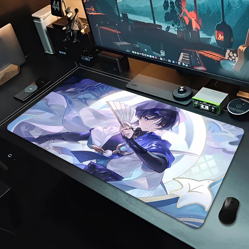 Mouse pad Genshin Impact Scaramouche Large rubber keyboard mouse carpet anti-slip gamer mouse pad coaster HD PC carpet Mousepad