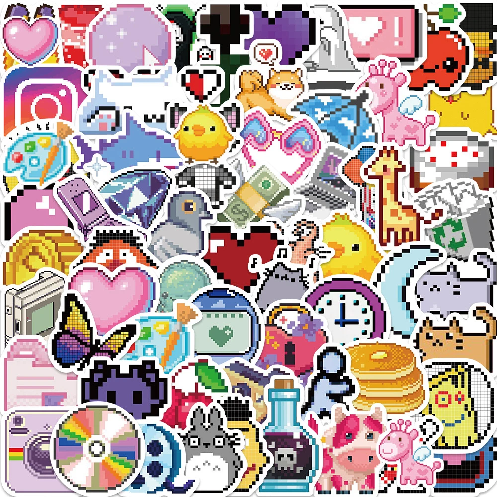 10/30/65PCS INS Style Cute Pixel Cartoon Aesthetic Stickers Laptop Phone Scrapbook Notebook DIY Luggage Graffiti Sticker Kid Toy