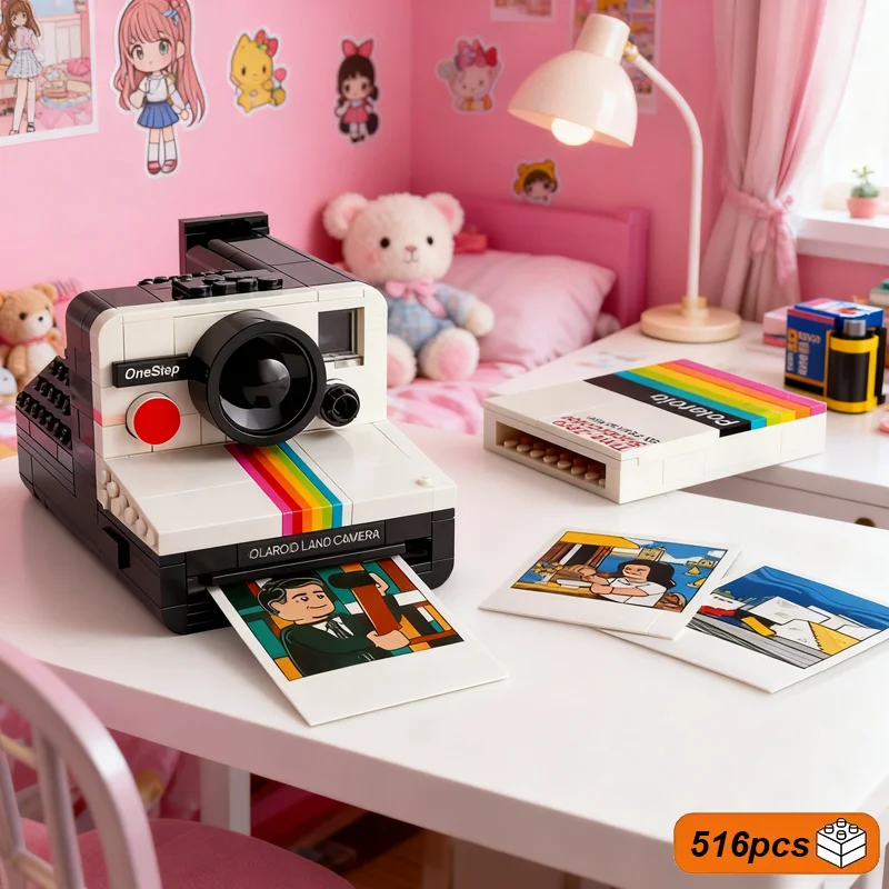 516PCS IDEAS Series Polaroid Camera Men and Women Collection Vintage Building Blocks Toys Vintage Camera Children Birthday Gifts