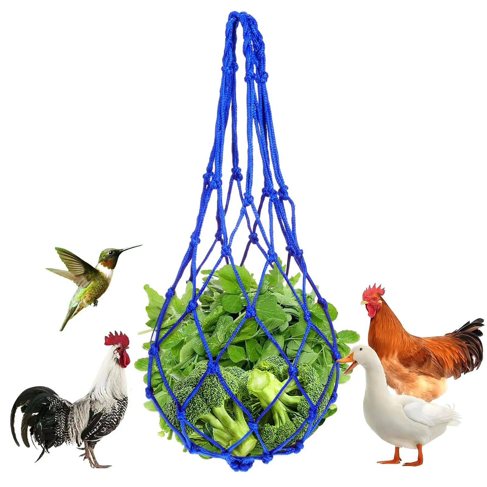 64 Nylon Blue Heavy Duty Livestock Feeding Mesh Bag Durable Food Container For Poultry Hanging Feeder Strong Braided Rope