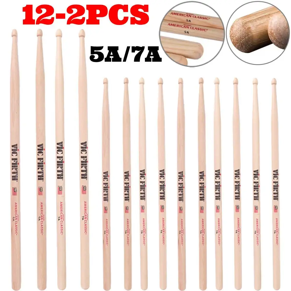12-2PCS Drumsticks 5A/7A Drum Sticks Consistent Weight and Pitch Wooden Mallets Hickory Drumsticks For Acoustic/Electronic Drum