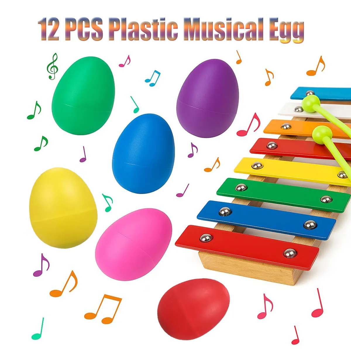 12 PCS Plastic Egg Music Shakers Percussion Musical Egg Maracas Easter Egg Kids Toys (6 Colors)
