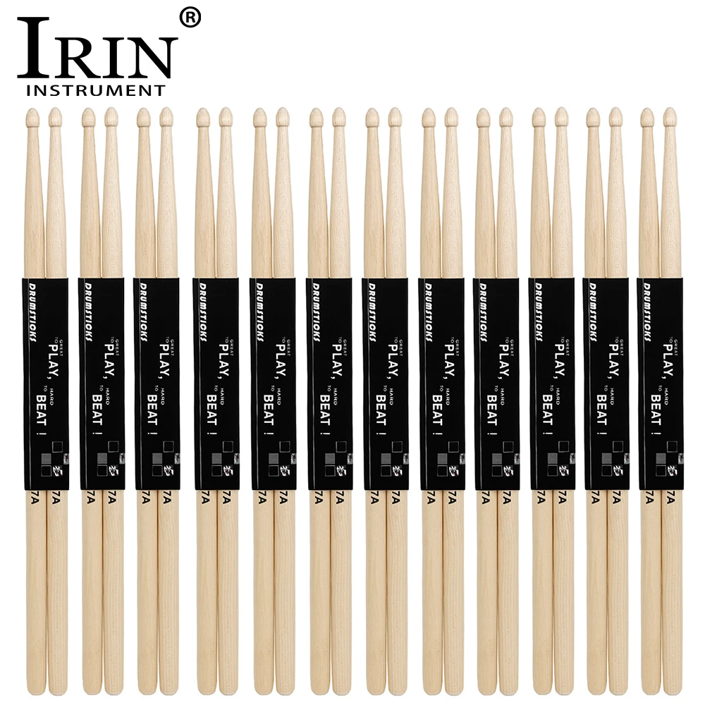 IRIN 12 Pairs 7A Maple Drumsticks Hand Polished Smooth Thornless Drum Sticks Professional Wooden Percussion Parts Accessories