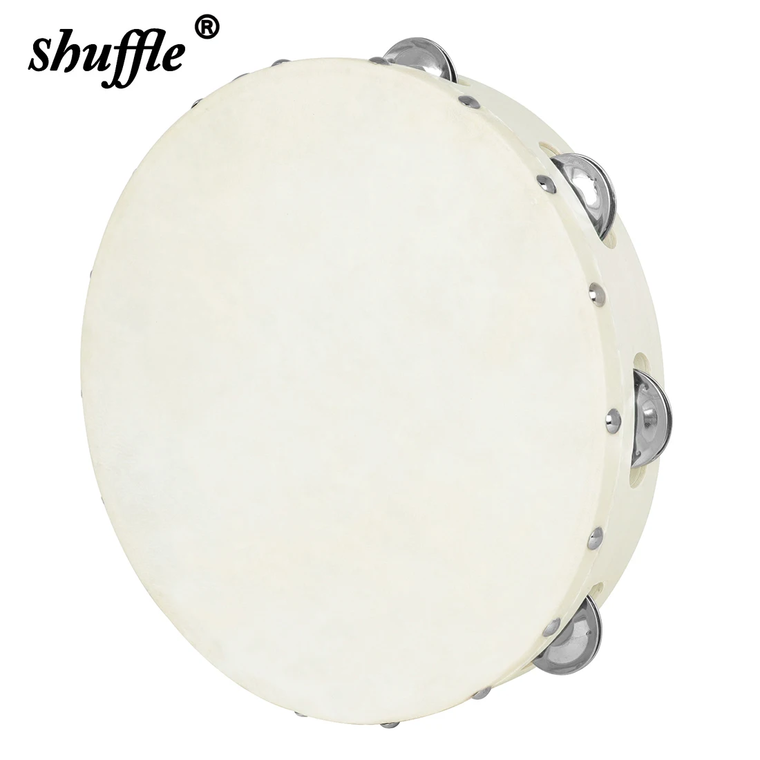 8/10inch Tambourine Orff Sheepskin Drum Wood Tambour Panderos Bell Jingles Percussion Musical Instruments Timbrel Christmas Gift