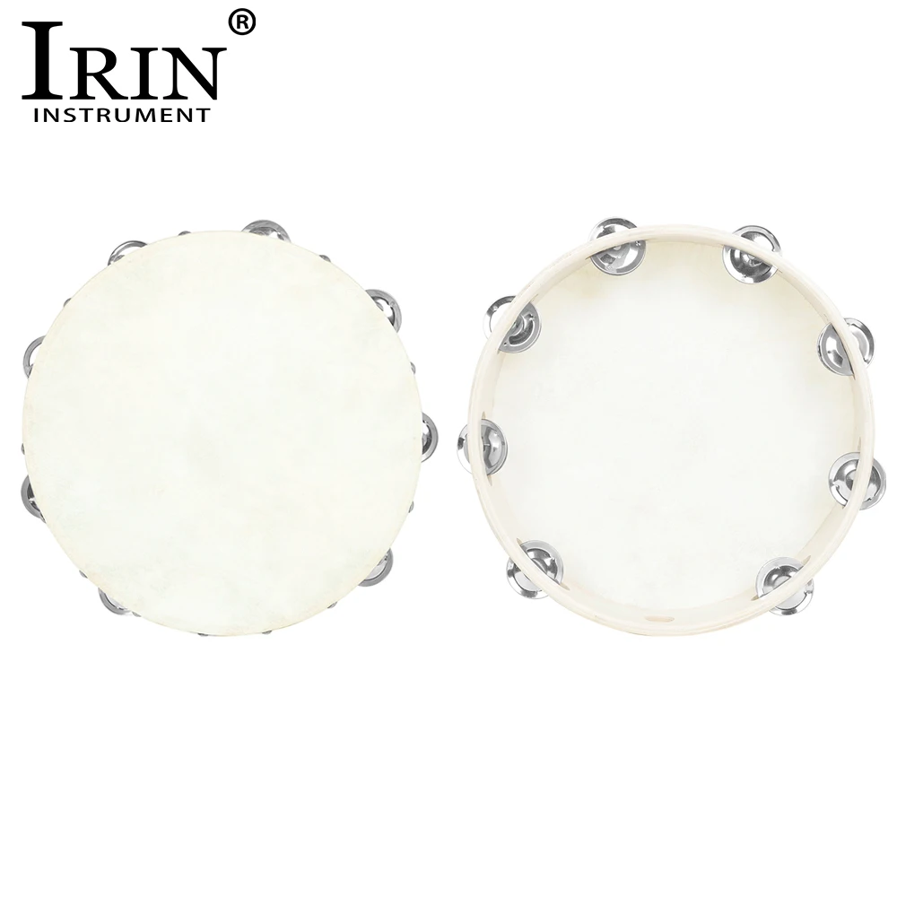 IRIN 8/10inch Tambourine Orff Sheepskin Drum Wood Tambour Panderos Bell Jingles Percussion Musical Instruments Christmas Gift