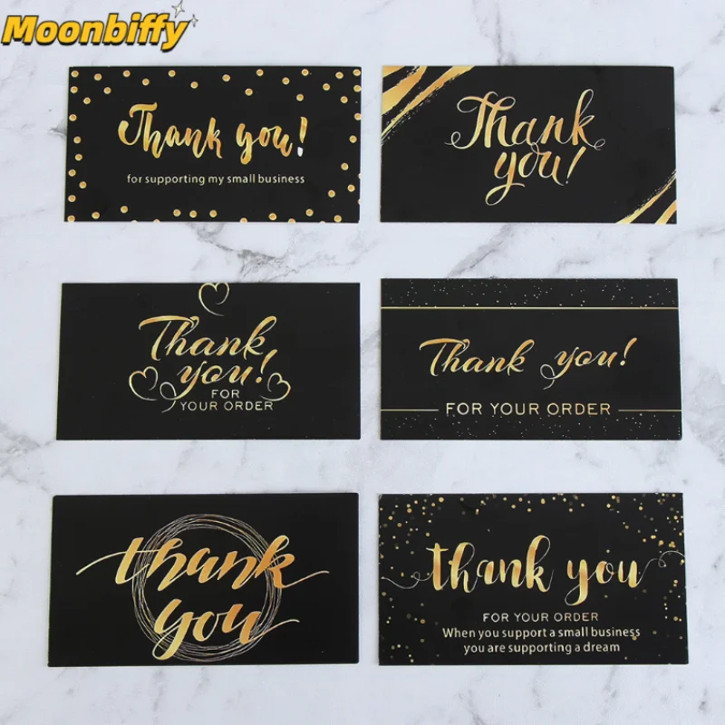 Black and Gold Kraft Paper Cards, Thank You for Your Order, Card for Small Shop Gift,Appreciate Card for Business, 50Pcs