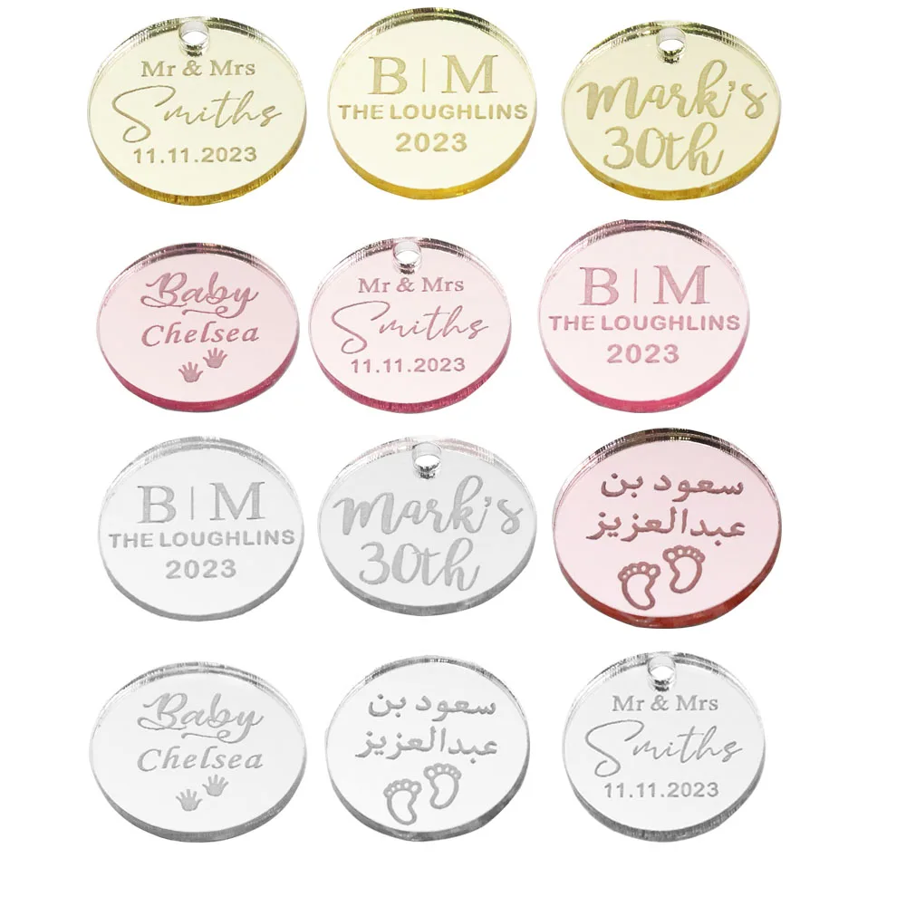20/50/100Pcs Personalized Tag Engraved Mirror Acrylic Round Circle Wedding Party Name Baby Baptism Decoration Custom Gift