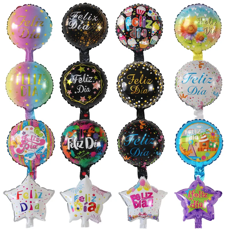 10pcs 10 Inch Spanish Happy Every Day Foil Balloons Feliz Dia Balloon Star Round Globos Birthday Party Baby Shower Wedding Decor