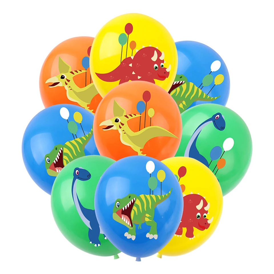 10PCS 12inch Carton Dinosaur Balloons Colorful Latex Balloon set for Kid Gifts Baby Boy's Dinosaur Birthday Party Decoration