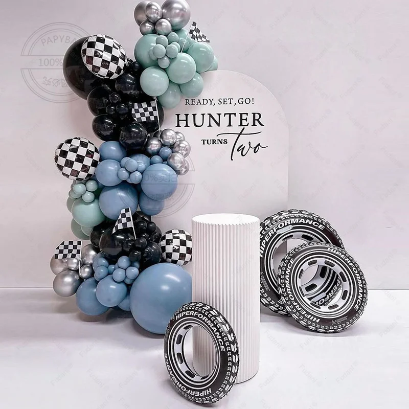 109Pcs Race Car Theme Balloon Garland Arch Kit Blue Black Latex Balloons Checkered Flag Boy's Birthday Party Baby Shower Decor