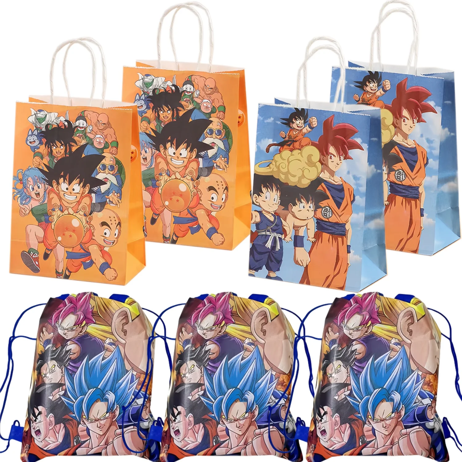 Dragon Ball Paper Gift Bags Birthday Decor Goku Drawstring Goody Biscuit Package Candy Bag Baby Shower Boy Gifts Party Supplies
