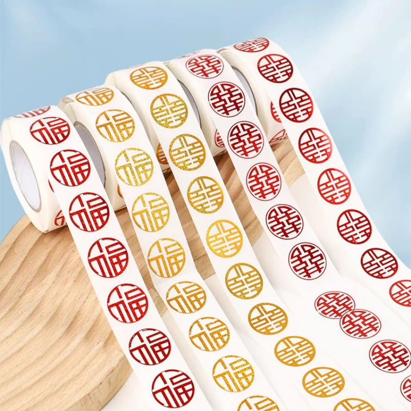 2 pieces of 500 stickers per roll Dragon Man Chinese Happy Character and Blessing Character Festival Stickers Wedding Gift Deco