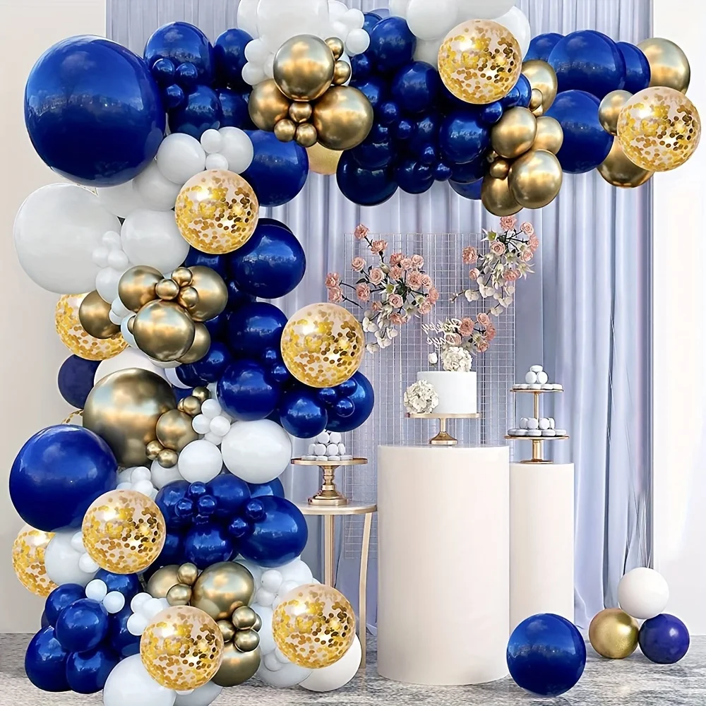 99Pcs Navy Blue Gold White Balloon Arch Kit for Baby Shower Birthday Wedding Party Graduation Celebration Anniversary Decoration