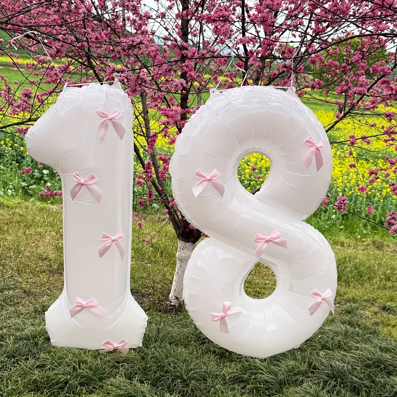 2pcs101.6cm pink bow decoration white digital balloon for birthday anniversary wedding graduation season New Year decoration