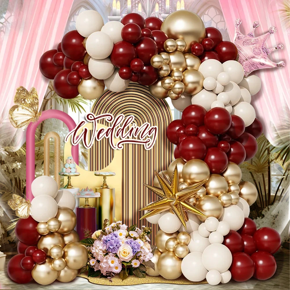 105pcs Burgundy Gold Balloons Arch Garland Kit, for Birthday Baby Showers Wedding Graduation Celebration Anniversary Decoration