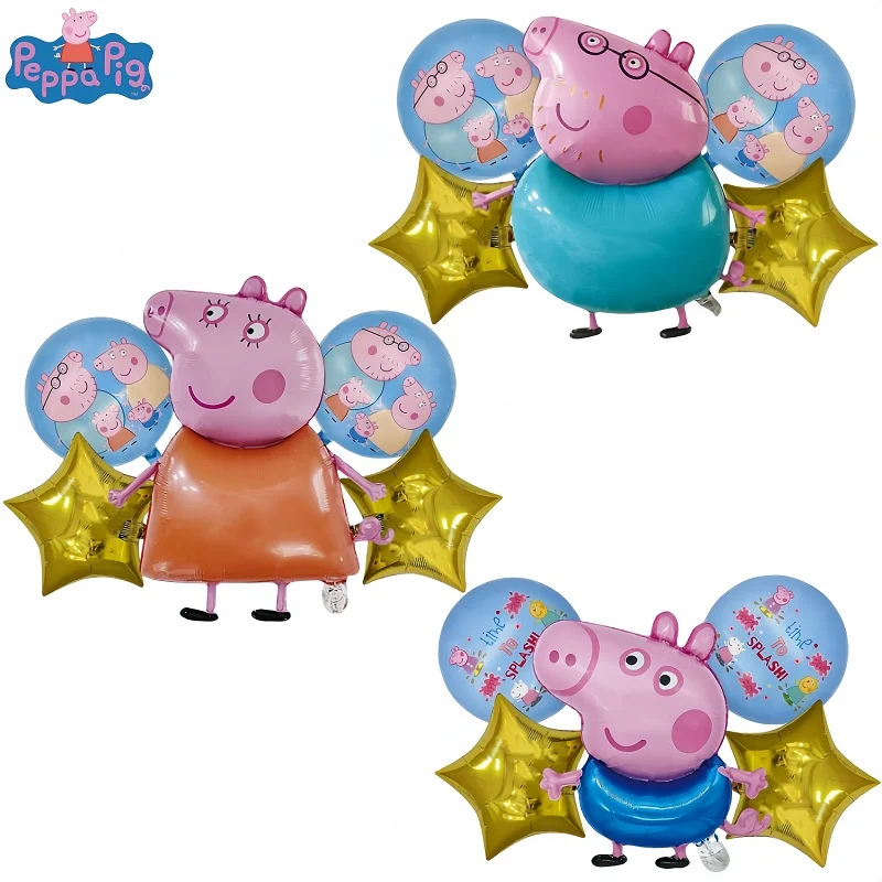 Peppa Pig Theme George Pig Dad Pig Mother Combination Set Aluminum Film Balloon Birthday Children's Day Party Decoration Backgro
