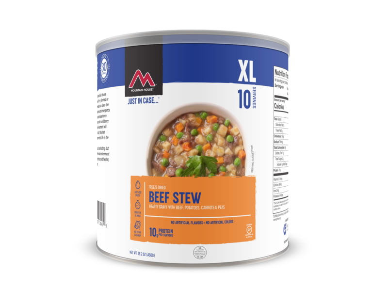 Mountain House Beef Stew 10 Servings 30145. Perfect for emergency food storate or nights where the whole soccer team shows up unannounced. Specifications for Mountain House Beef Stew Can: Manufacturer: Mountain House Quantity: 1 Number of Servings:...