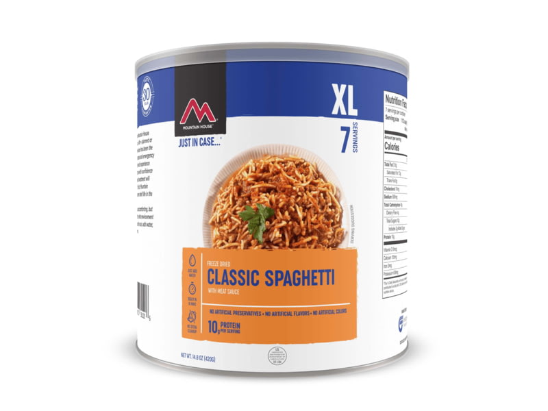 Mountain House Classic Spaghetti with Meat Sauce 7 Servings 30120. This meal gives you that wholesome comforting flavor of Italian cooking in hardly any time at all. Tender spaghetti noodles hearty chunks of beef rich marinara sauce - what's there...