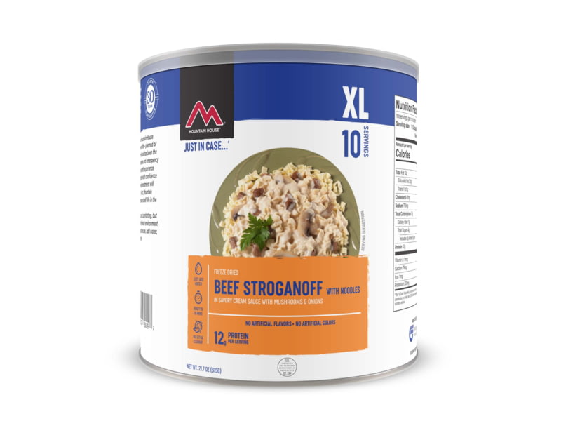 Mountain House Beef Stroganoff 10 Servings 30149. Stock your pantry so you'll have a delicious meal to make in an emergency whether it's a power outage or your in-laws showing up unannounced. Specifications for Mountain House Beef Stroganoff Can:...