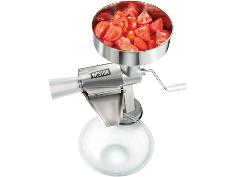 Weston Products Metal Tomato Strainer Stainless 07-1201-W. Ideal for large batches of sauce seedless jam & salsa. Large capacity hopper holds 1 gallon of produce. Specifications for Weston Products Metal Tomato Strainer: Manufacturer: Weston...  Read more