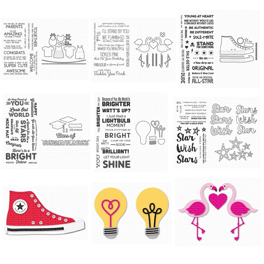 2024 New Lucky Stars Wishes Flamingos All-Star High Top Graduation Accents Cutting Dies Clear Stamps Scrapbooking Frame Card