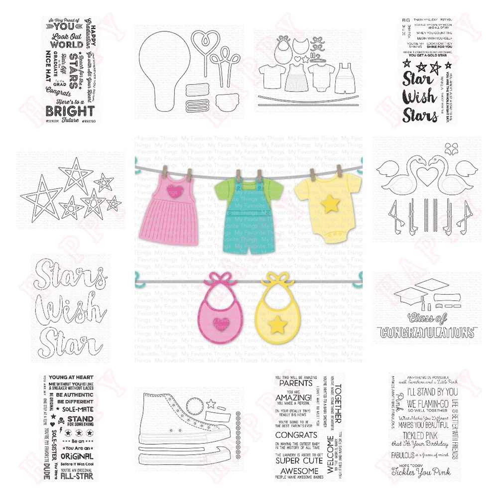 Welcome Baby Metal Cutting Dies and Stamps, DIY Scrapbook Paper Cards, Handmade Happy Graduation, Stars and Wishes Die, New, 2024