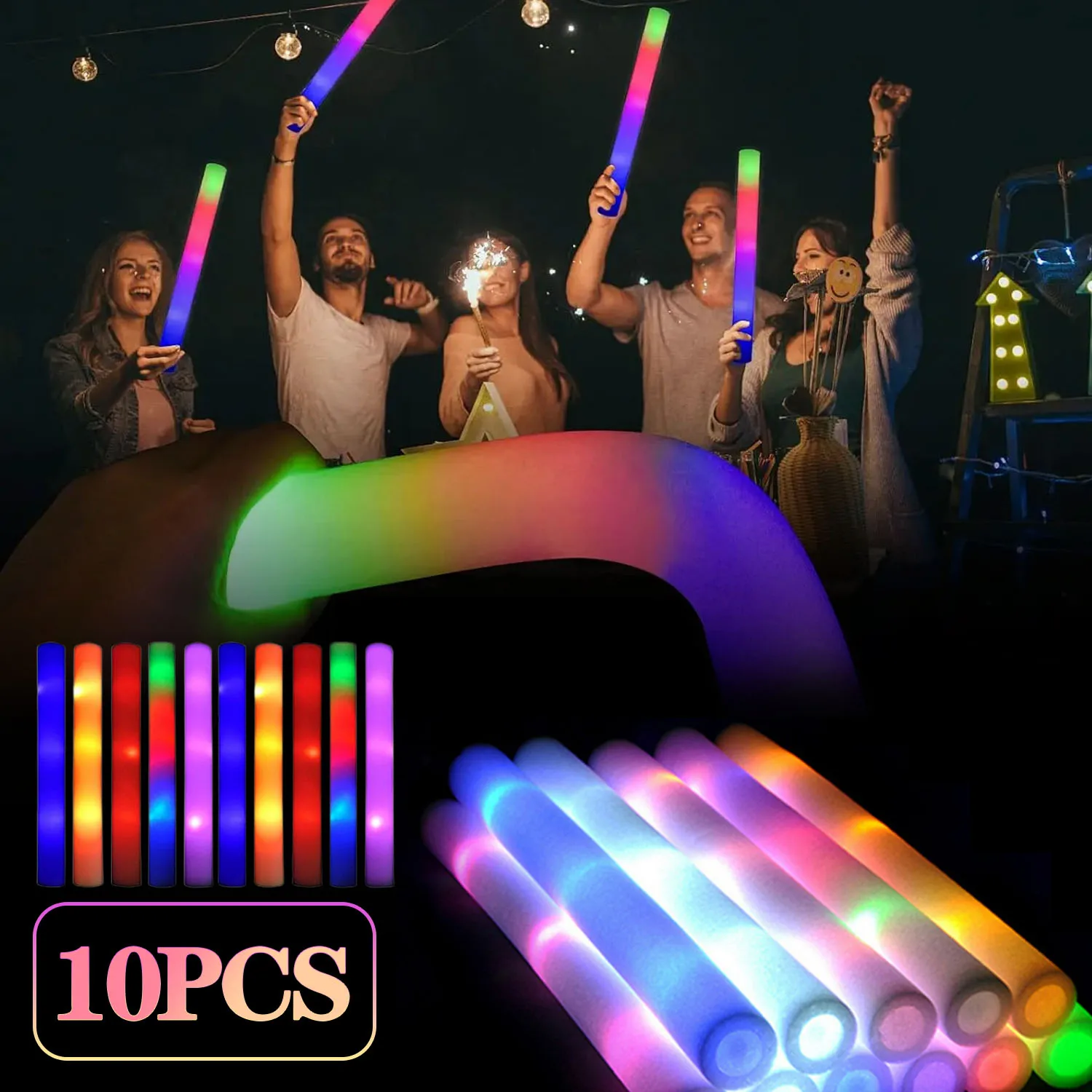 10PCS Glow Stick Light Up Party Supplies Music Festival Concert Props Wedding Celebration Halloween Mardi Gras Night Event Decor