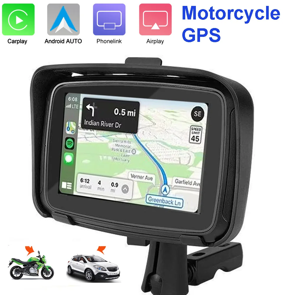 5 inch Car GPS Wireless Apple Carplay Android Auto for Car Motorcycle GPS Navigation IPX7 Waterproof Blutooth Google map