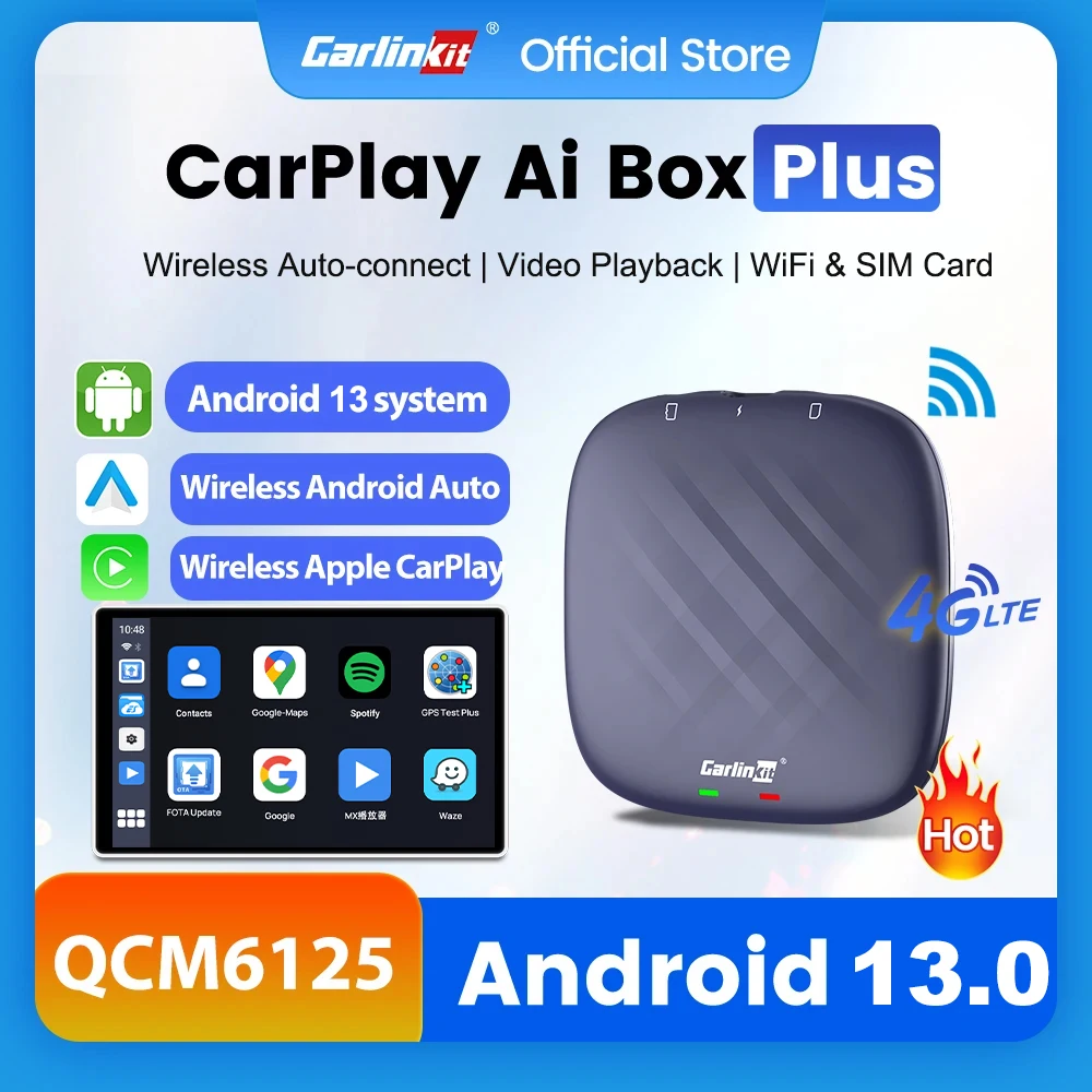 CarlinKit Wireless Navigation System Box Android 13 CarPlay Ai Box Qualcomm QCM6125 /6225 Wireless Android Auto Online Video Box